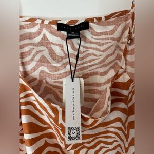 Bold zebra pattern in orange. Sleeveless design with a relaxed fit. Perfect for casual outings.