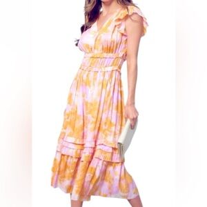 Current Air Sherbert Lavender Midi Dress Ruffles & Pleats Anthropologie NWT