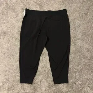 Sleek black joggers with drawstring waist. Features zippered pockets for secure storage. Open to offers.