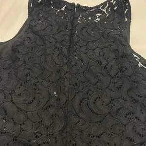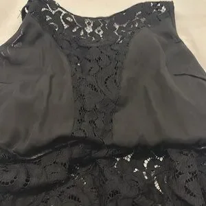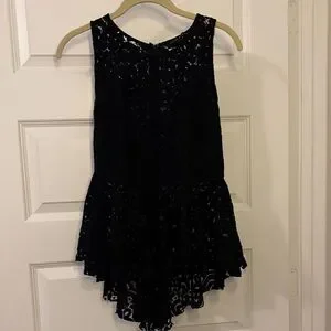 Chic black lace top with intricate floral design. Perfect for layering. This is used has some wear but overall good shape unique design top does have some lining in front