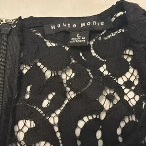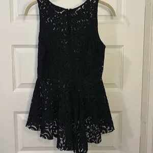 Haute Monde Black crochet Lace Overlay peplum Top SZ Large whimsigoth night out