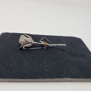 Vintage Silver Tone 3D Etched Rose Brooch Pin Pendant Gift Collectible