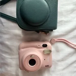 Instax Mini Pink Camera with Green Case