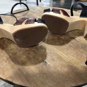 Elegant mules with a black and brown leather design. Perfect for versatile styling.