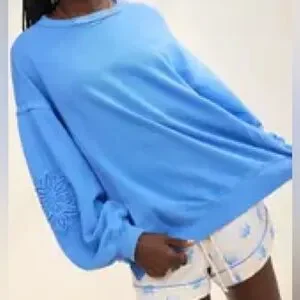 Aerie Keep It Light Oversized Crochet Crew Sweatshirt Blue