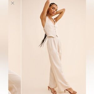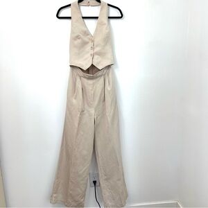 Anthropologie Astr Cream Wide Leg vestJumpsuit, size Small, linen rayon blend