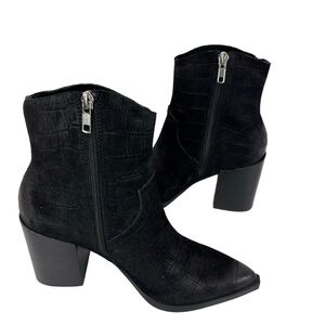 Steve Madden Womens 6.5 Cate Black Croc Ankle Boot Suede Pointed Toe