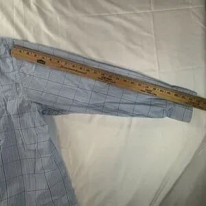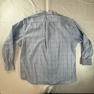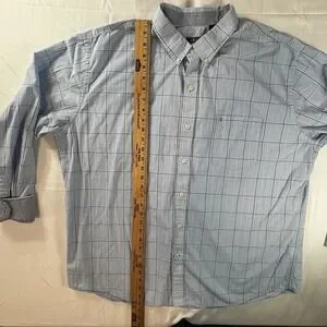 This Izod Premium Essentials men's button-up shirt is a versatile addition to any wardrobe. It features a check pattern in blue with an embroidered pocket logo. The shirt has a button-down collar and long sleeves, making it suitable for various occasions such as travel, weddings, parties, casual outings, formal events, workwear, and business meetings.