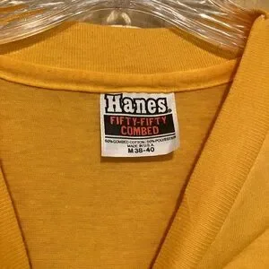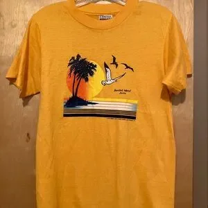 Sun your buns in this vintage Hanes men's deep yellow graphic tee from Sanibel Island Florida. 🌞