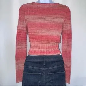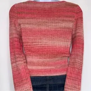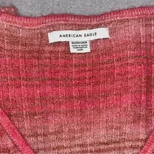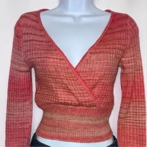 American Eagle Outfitters Wrap Front Crop Bubble Top Multi Color Ribbed Knit. AEO