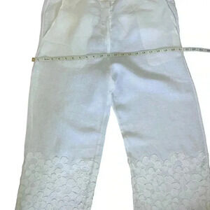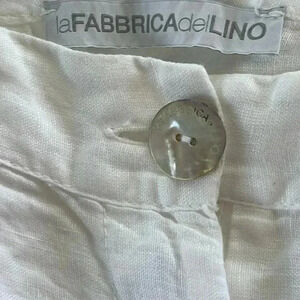 LaFabbricadeilino 100% Linen white floral derail pants size M Italy made Boho