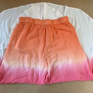 New with tags. Stock photo showing item in photo 1. Stock photo 2 shown for inspiration only. Color: orange, white, and pink ombré. YFB ombré high waisted harem pants. Elastic waist, pull on style, flowy tie dye, high side slits. Designed for fun summer casual wear, tropical beach cover up, vacation, cruise wear, harem, or comfy all day pants. Lightweight and breathable. 100% rayon.