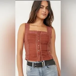 New! Free People Brown Maggie Lace Tank