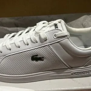 Lacoste White Tennis Shoes with Green Accent