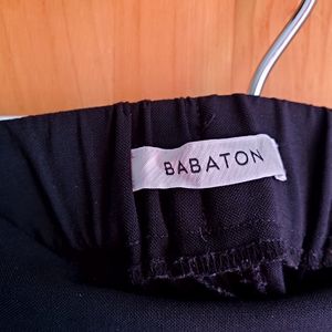 Babaton women's black cropped dress pants in a lightweight wool. Straight leg pull on with an elasticated back waist. Slash pockets. Size 4 measures waist 14 inches and inseam 24 inches. In excellent used condition.