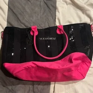 Victoria's Secret Black and Hot Pink Sequin Tote