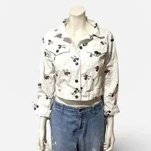 Disney Mickey & Minnie Mouse White Denim Crop Top Jacket Small
