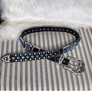 Jeweled leather belt with silver toned buckle