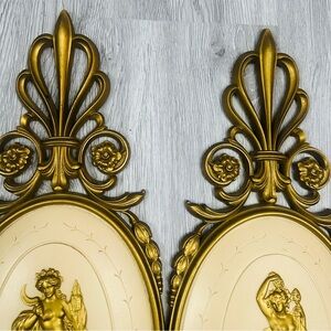 Vintage Dart Industries 7245 Ornate Golden Goddess Wall Plaques 22” Set of 2 USA