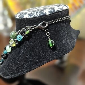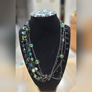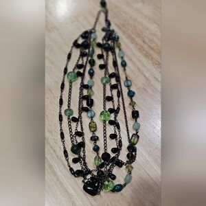 Excellent used condition Sophia "Herb Garden" Green Glass & Resin Beads Necklace on black hardware. This stunning five multi-strand necklace features vibrant green beads, perfect for adding a pop of color to any outfit. Its elegant design makes it a versatile accessory for both casual and formal occasions. Measures 17 inches with 3 inch extender. Ships from smoke-free and pet free home.