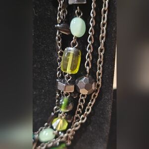 Lia Sophia Multi-Strand "Herb Garden" Green Glass Resin Beaded Necklace 17-20in