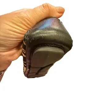Elegant animal print flats with bold gold MK emblem. Round toe. Circular logo at toe in gold. Hair on hide leather in a cheetah animal print. Driving shoe style rubber bottom. Very light and hard to see scuffing on the heel of the shoes. From trying on, never worn.