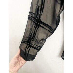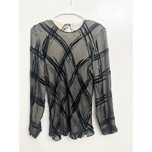 WORTH NEW YORK Black Abstract SHEER SILK Lined Artsy Top BLOUSE SIZE 12 Shirt