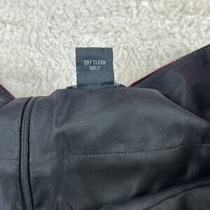 Dolce apparel a line midi skirt in grey tweed with maroon and black striped velvet waistline, oversized velvet and bead floral accent, and mesh edging. Skirt is a cotton blend, fully lined, with back zip closure and not much for stretch.