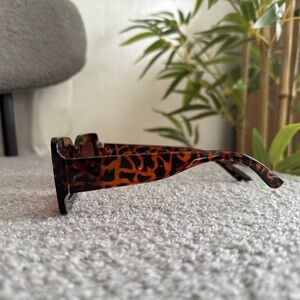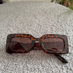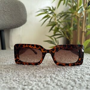 Stylish square sunglasses with a bold leopard print frame. Perfect for a chic look.
