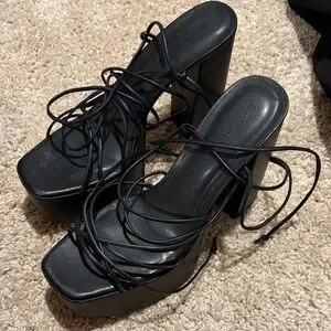 Gianni Bini Black Platform Lace-Up Sandals