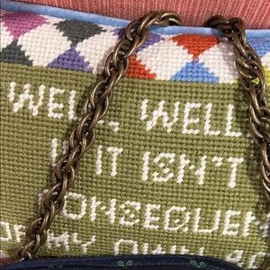 J. Crew tennis motif vintage silk Navy Blue Bag with Chain Strap Y2K