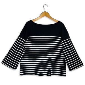 Land's End Women's Striped 3/4 Sleeve Top Size L Black White Boat Sleeve Shirt