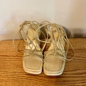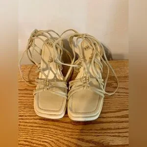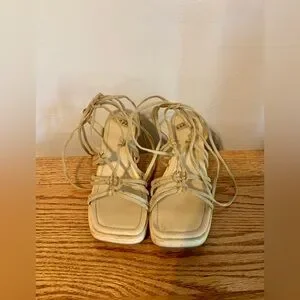 Fun retro early 2000s 90s y2k cut out chunky heels from BAMBOO! Ties and wraps up the calves and ankles, like new condition, un worn.