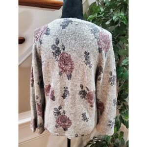 Lucky Brand Women Gray Floral Cotton Round Neck Long Sleeve Pullover Sweater M