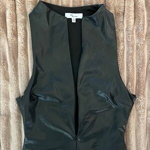 Faux leather black zip up, high neck bodysuit. Sleeveless design. Perfect for layering.