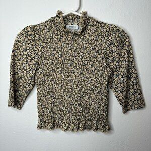Sandro Gigi Floral-Print Smocked Crop Tee SIZE S Small
