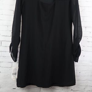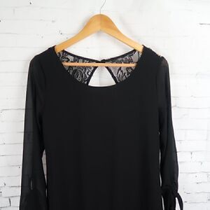 BLACK LONG SLEEVE ROUND NECK SHIFT DRESS SIZE SMALL TWO WAY TO STYLE SLEEVES LACE DETAIL & KEYHOLE ON BACK LINED BY SPEECHLESS NEW WITH TAGS