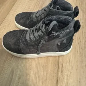 Elevate your casual look with Billy's charcoal high-top sneakers. Designed for comfort and style, these shoes are perfect for any outing. Zipper closure for easy put on and independence. Never worn, still have tag.