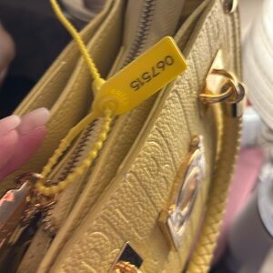 All designer and authentic handbags and accessories will have a yellow plastic tamper resistant security tag ( that can be easily removed with scissors) secured to each item. This tag will have a unique serial number that matches the item sold. The security tag must remain intact and tamper free in order to return or exchange an item from my closet.