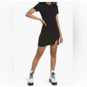 Chic black ribbed dress with a stylish front slit. Ideal for casual wear. Worn one time on vacation. Will add actual pics and video but these images are from the purchase site (Nordstrom).