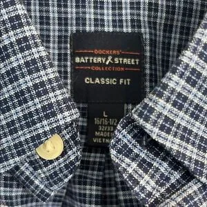 Men's Dockers Battery Street Blue Checkered Shirt Size Large