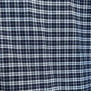 Classic navy plaid design. Button-down style. Ideal for casual outings.