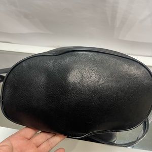 A quality soft leather by perlina. I’d you know this brand you know the brand. Has a large zipper pocket in the bag. Shoulder strap is adjustable. The call outs minor scar, a spot on it review pics but you can’t see it. It had a lot of wear left.