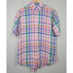 Ralph Lauren Mens L Linen Madras Plaid Short Sleeve Button Down Shirt