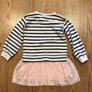 Crewcuts Striped Navy and Pink sweatshirt dress wilth Tulle