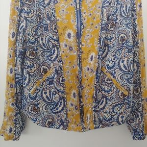 Umgee Boho Paisley Yellow Blue Bomber Jacket Medium Mixed Print