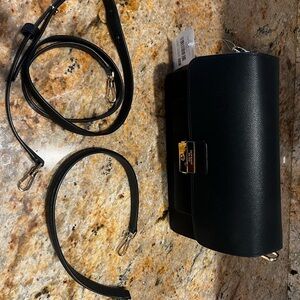 Chic black crossbody bag by Kate Spade. Features elegant gold hardware. Ideal for versatile styling. Brand new with tag. Measures about 9”x6”x3”.