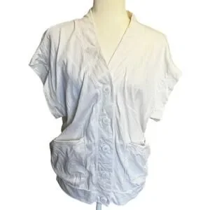 NSF White Cotton Button Front Top Relaxed Minimalist Made in USA Size Small