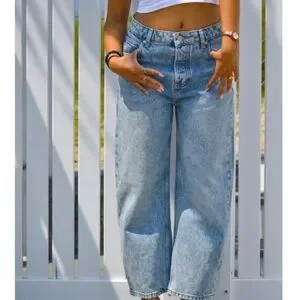Chic wide-leg jeans in denim blue. Ideal for everyday style.