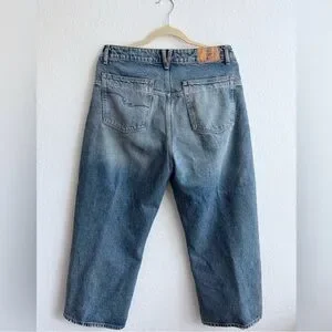 Features: Button-fly closure, five-pocket design, premium rigid denim, ankle-length inseam